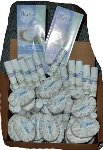 Thank you to the people at Alabu for donating these great goat milk products & more! The soaps and lotions are great for dry skin, (like our troops have in the desert) and more Please visit their website here. These 3 pics of latest donation from 12/09 Here is their latest donation from 3/09 for the Easter boxes going out... Thank You!