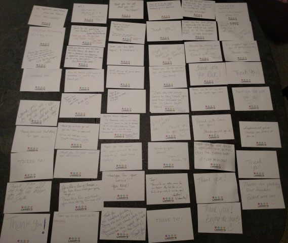People from all over the country signed cards of appreciation we sent to the troops deployed overseas