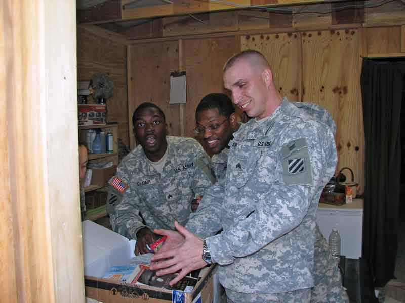 Some troops enjoying some of the candy we sent over for Christmas 2010...