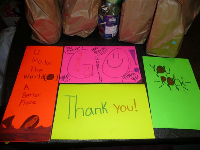 | Here are some of the wonderful cards and gift bags they made that were sent with the other treats | |