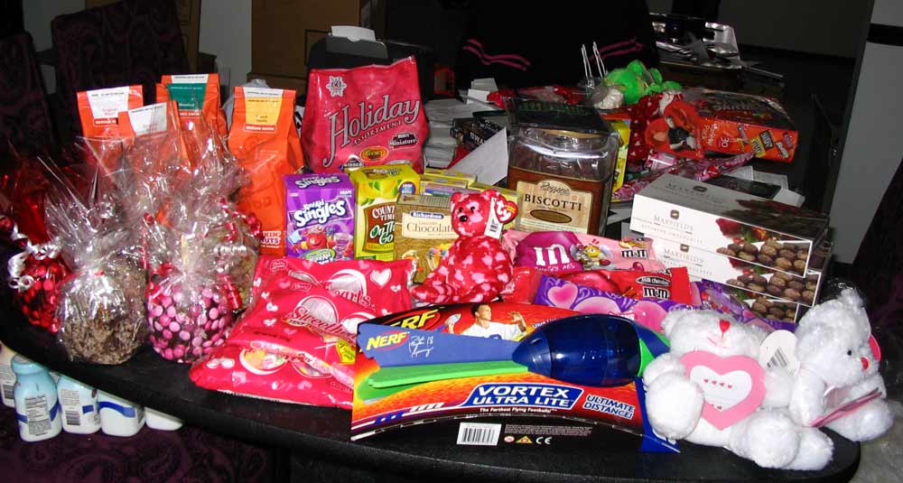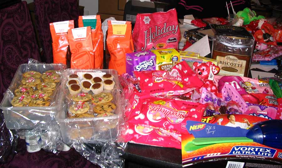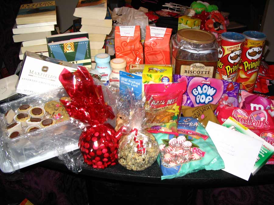 These Valentines boxes just went out! They are going to different units in Iraq and weigh between 25 - 45 #s each Lots of homemade treats, adding to a division library of books, dvds, coffee, drink mixes for water bottles, toys and more... |